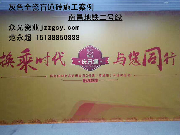灰色全瓷盲道磚廠家 ——焦作市眾光耐酸瓷業有限公司,熱烈祝賀南昌地鐵二號線首通段峻工,8.18進入換乘新時代,開通儀式將在中建五局建設的地鐵大廈站隆重舉行,眾光瓷業全體員工祝開通儀式順利舉行!